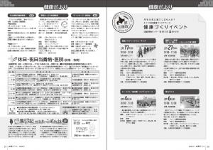 健康だより 雪道ノルディックウォーキング/健康づくり教室「やさしい筋トレ・ストレッチと体力測定」/E-リズム基本編エンジョイコース/体力づくり/市立病院の健康教室/野菜たっぷり料理教室/ゲートキーパー研修会/休日・祝日当番病・医院/ちょこっと手話 |