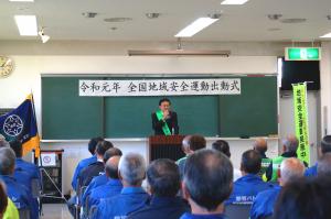 令和元年10月10日(木曜日) 全国地域安全運動に伴う出動式が江別市勤労者研修センターで行われました。「全国地域安全運動」は安心して暮らせる地域社会の実現を目的として毎年開催されており、今年は10月11日(金曜日)から20日(日曜日)までの間、全国一斉に実施されます。 |