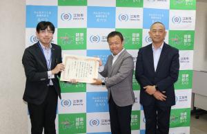 6月27日(火曜日)、武ダ技建創 株式会社の長谷川 晃司(はせがわ こうじ)常務取締役が来庁し、企業版ふるさと納税(地方創生応援税制寄付金)による寄付がありました。